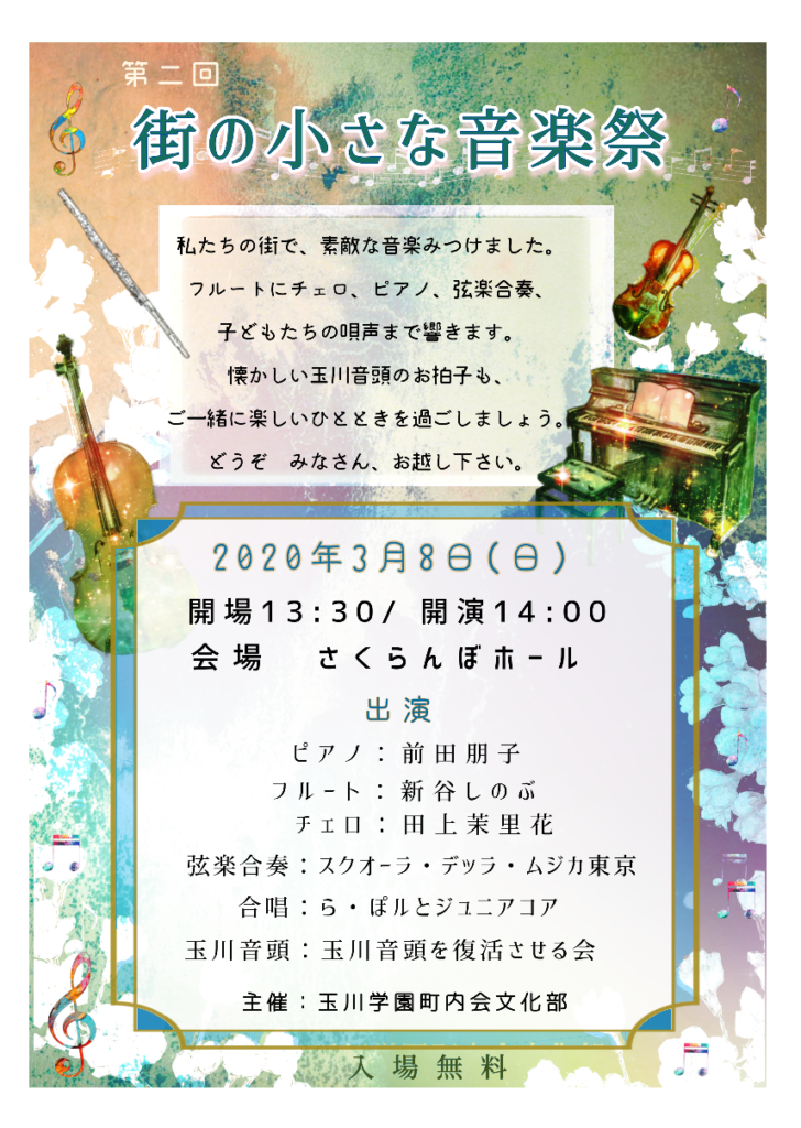 街の音楽会 町内会から依頼を受けて作成しました。 コロナで開催延期となり、大変残念です。 Atelier, Recent works < 講座の案内ー4スタンス | 音楽教室 ピアノ発表会のプログラム表裏 >